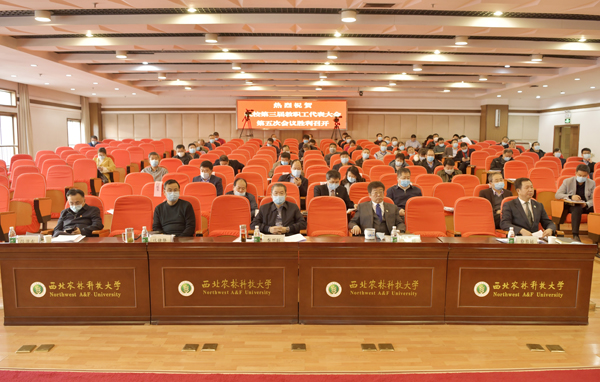 大会在庄严的《国歌》声中拉开序幕。会议听取了校长吴普特作的题为《凝心聚力 砥砺前行 协力推进世界一流农业大学建设》的工作报告。吴普特指出,2020 年是全校师生勠力同心共克新冠肺炎疫情难关、凝心聚力共创“双一流”建设新局面的一年。学校以习近平新时代中国特色社会主义思想为指导,全面贯彻党的十九大和十九届二中、三中、四中、五中全会精神,深化落实全国教育大会和全国研究生教育会议精神,始终牢记习近平总书记给全国涉农高校的“回信”嘱托,积极弘扬“西农精神”、深入落实“ 45645”发展思路,围绕“治理体系和治理能力提升年”工作主题,全力打赢校园疫情防控阻击战,持续推进“双一流”建设, 各项工作呈现良好发展态势。