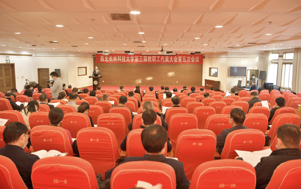 春来同绘新蓝图,共谋发展新未来。1月13日上午,学校第三届教职工代表大会第五次会议在国际交流中心208会议室主会场及校内9个分会场召开。校党委书记李兴旺、校长吴普特以及校领导徐养福、马建华、吕卫东、冷畅俭、陈玉林、陈红、闫祖书、韦革宏、赵敏娟、房玉林参加会议。
