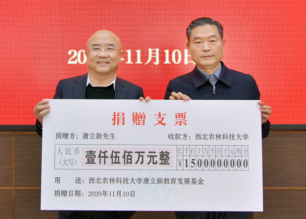 根据协议,唐立新先生慷慨捐资1500万元人民币设立“西北农林科技大学唐立新教育发展基金”,基金分为唐立新优秀学生教育发展基金项目、唐立新优秀教师教育发展基金项目、唐立新综合素质发展基金项目、唐立新文艺基金项目四个部分。将主要用于奖励和支持西农学业优秀、品学兼优的全日制在校学生,以及在教学、科研、学生工作及管理方面有突出贡献的教职员工。该基金是我校教育基金会项目体系中涉及面最为全面的基金之一,为支持学校教育事业的发展,培养高素质拔尖创新人才,培育高水平师资队伍,营造健康和谐的校园文化助力良多。