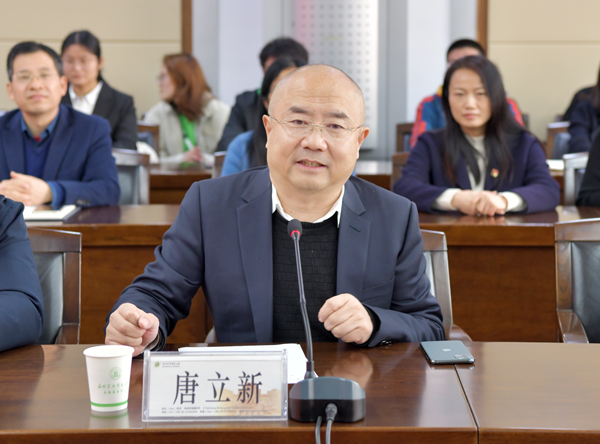 李兴旺代表学校向唐立新先生对西农的慷慨支持致以诚挚感谢。他简要介绍了学校历史沿革、学科特色和科研优势、以大学为依托的农业科技推广新模式等。讲述了一代代西农人弘扬 “西农精神”,服务国家战略,为保障我国粮食安全、生态文明,以及推动经济社会发展贡献着西农力量的生动实践。