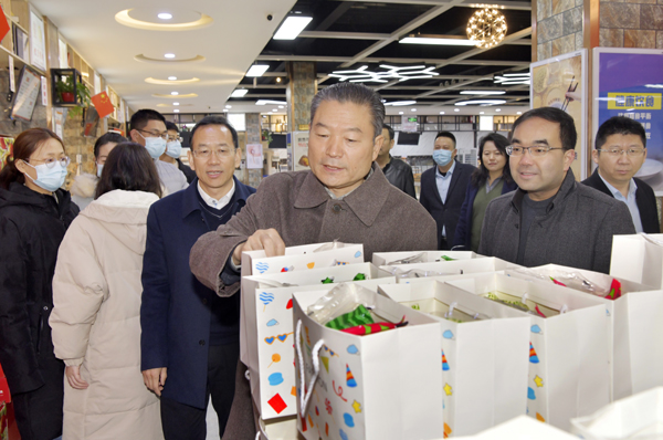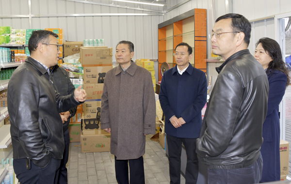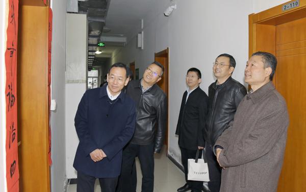 李兴旺一行察看为留校学生发放的元宵节大礼包